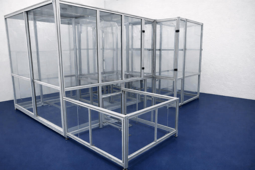 Progettiamo e costruiamo carterature di sicurezza utilizzando profili in alluminio e pannelli tecnici.